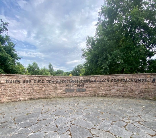 Ehrenmal für die Opfer des Faschismus im Schlosspark. Es ist aus behauenen Natursteinen errichtet.