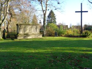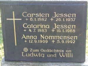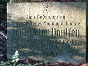 Auf dem Friedhof von Leck: Kriegsgräberfeld (Zweiter Weltkrieg), Denkmal (Erster Weltkrieg) und Gedenkstein (1870/71).
