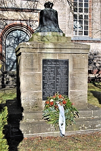 Gedenkstätte mit großer Glocke für 31 im Ersten Weltkrieg gefallene und vermisste Liebensteiner vor der Johanneskirche an der Hauptstraße.