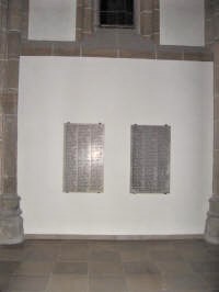 Zwei schlichte Gedenktafeln in einer Nische der St. Paul Kirche befindlich.