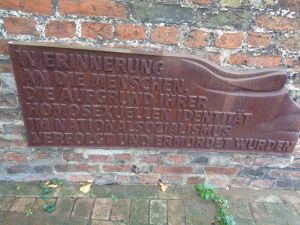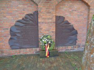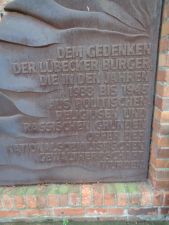 Gedenkstätte für die Opfer der Nationalsozialistischen Gewaltherrschaft an der Mauer des Torweges vom Zeughaus am Lübecker Dom.