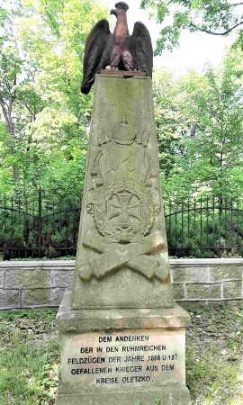 Nach der Übernahme des Ortes durch die neuen polnischen Machthaber 1945 wurde die deutsche Bevölkerung vertrieben und deutsche Denkmäler meistens abgerissen. Dieses Denkmal stand ursprünglich auf dem heutigen Wolności Platz. Nach 1945 wurde es als Denkmal zu Ehren der "Befreier von Olecko von der germanischen Besatzung" umgewidmet und die Inschrift von einer neuen Tafel verdeckt. Der preußische Adler wurde durch einen polnischen Adler ersetzt. Im Jahre 2003 wurde das Denkmal auf seinen heutigen Platz versetzt, in seinen ursprünglichen Zustand zurückversetzt und feierlich eingeweiht. Das Denkmal ist 20 Jahre später in einem guten Zustand, aber der zum Park umgestaltete Friedhof ist sehr verwildert, die dort in der Nähe befindliche Kriegsgräberstätte des 1. Weltkriegs in einem schlechten und vermüllten Zustand. Marggrabowa und auch der Kreis Oletzko wurden 1928 in Treuburg umbenannt. Die Stadt hieß nie offiziell Oletzko, wurde aber umgangssprachlich so genannt.