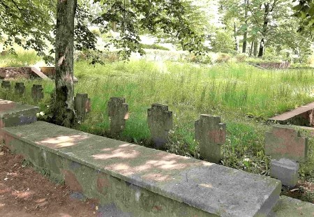 Auf der Kriegsgräberstätte ruhen weitere 26 unbekannte deutsche Soldaten. 100 Meter weiter befindet sich ein Massengrab für 98 unbekannten russischen Soldaten.