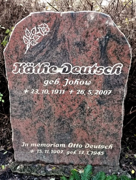 In memoriam Ehemann von Käthe Deutsch, geb. Johow (1911-2007); ruht auf der Kriegsgräberstätte in Lommel (Belgien): Block 28 Grab 243 |