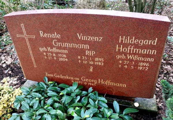 Zum Gedenken an … Ehemann von Hildegard Hoffmann, geb. Wißmann (1896-1972); für tot erklärt durch Amtsgericht Berlin Tempelhof-Kreuzberg vom 26.04.1949 (Standesamt I in Berlin Nr. 7147/1949) |