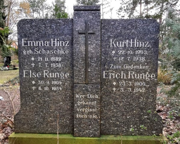 Zum Gedenken Ehemann von Else Runge, geb. Schultz (1904-1984) |