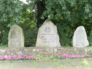 Das Ehrenmal in Form von drei Findlingen befindet sich in Ortsmitte. Unweit davon entfernt hängt eine ältere Holztafel an einem Holzturm.
