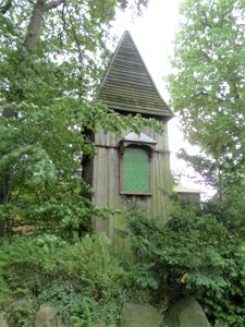 Holztafel an Turm