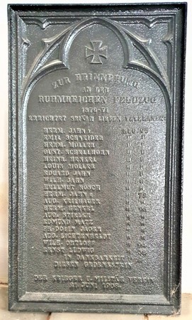 Abgenommene Metallplatte, angelehnt an die Wand in der Kirche.
