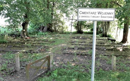 Nach 1945 wurde in Ostpreußen die deutsche Bevölkerung vertrieben und die meisten Denkmäler abgerissen, beschädigt oder umgewidmet. Im Ort ist kein Gedenken an gefallene Einwohner erhalten. Die Kriegsgräberstätte war bis 2014 in einem sehr verwilderten Zustand und wurde dann saniert. Sie war aber 2023 schon wieder in einem schlechten Zustand und die meisten Grabsteine nicht mehr lesbar. Die Tafel am Widmungsstein wurde nach 1945 zerstört und 2014 eine Tafel in polnischer Sprache angebracht. Die Namen wurden notiert aus folgendem Buch von M. Dehnen: Die Kriegsgräber in Ostpreussen von 1914/15.