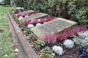 Bei den Kriegsgräbern zwei Unbekannte mit Todestag 20.06.1944 bzw. 28.03.1945.
