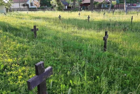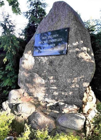 Nach 1945 wurde in Ostpreußen die deutsche Bevölkerung vertrieben und die meisten Denkmäler abgerissen, beschädigt oder umgewidmet. Es ist kein Gedenken an gefallene Einwohner erhalten. Dieser Friedhof ist gepflegt, doch es sind fast keine Namenssteine mehr vorhanden. Die Holzkreuze sind symbolisch. Es finden sich auch keine Namenslisten in den bekannten Büchern zum Thema. Die Inschriften am Denkmal waren kaum noch lesbar. Nach 2014 wurde eine schwarze Steintafel mit gleichlautender Inschrift angebracht.