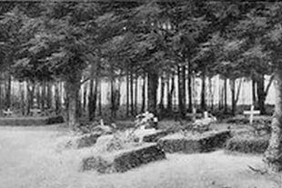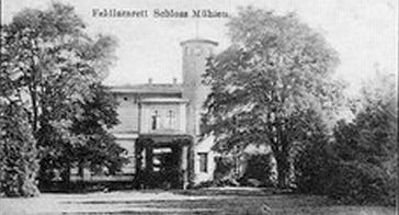 Ehemalige Kriegsgräberstätte für im Ersten Weltkrieg im Feldlazarett Mühlen im Schloss gestorbene Soldaten (nicht mehr vorhanden).