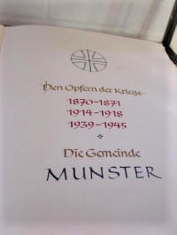 In der Kapelle des Waldfriedhofes befindet sich ein Gedenkbuch. In dem Buch sind alle Toten der Kriege, die Angehörige in Munster hatten,