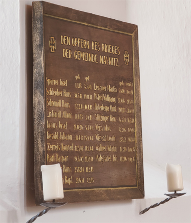 Gedenktafel für den 2. Weltkrieg in der St. Anna Kapelle.