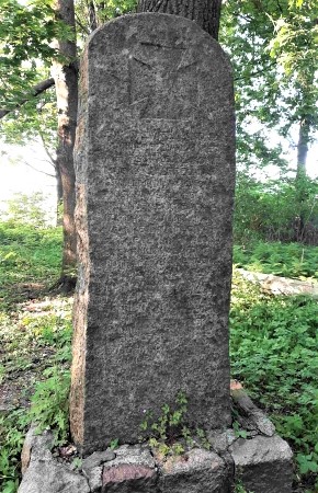 Kriegsgräberstätte für Gefallene des Ersten Weltkriegs auf dem alten evangelischen Friedhof nördlich des Ortes: Aufgerichtete Granitplatte mit großem EK-Zeichen im oberen Bereich für 22 deutsche Soldaten (davon 11 unbekannt).