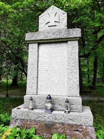 Nach 1945 wurde in Ostpreußen die deutsche Bevölkerung vertrieben und die meisten Denkmäler abgerissen, beschädigt oder umgewidmet. Dieses Denkmal ist noch in seiner alten Form erhalten. Es ist aber ohne Hilfsmittel schlecht ablesbar. Neben dem Denkmal wurden einige alte deutsche Grabsteine abgelegt.