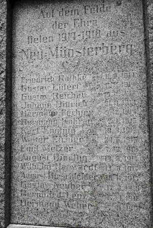 Denkmal für die Gefallenen des Ersten Weltkriegs an einem Seitenweg im Ort: Stele aus Steinblöcken mit eingelassener Widmungs- und Namenstafel und aufgesetztem Stein mit EK-Zeichen.