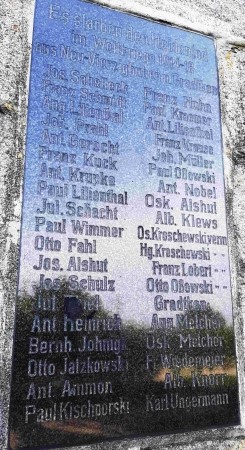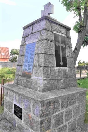 Nach 1945 wurde in Ostpreußen die deutsche Bevölkerung vertrieben und die meisten Denkmäler abgerissen, beschädigt oder umgewidmet. Hier wurde nach 1945 das EK-Zeichen oben demontiert und ein Schaukasten mit Jesus-Figur aufgesetzt. Diese Figur war bei der Erstveröffentlichung dieses Kapitels 2007 noch vorhanden. Im Jahre 2023 war diese entfernt und das alte EK-Zeichen krönte wieder das Denkmal.