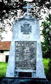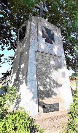 Nach 1945 wurde in Ostpreußen die deutsche Bevölkerung vertrieben und die meisten Denkmäler abgerissen, beschädigt oder umgewidmet. An diesem Denkmal wurde das EK-Zeichen oben zerschlagen und ein christliches Kreuz aufgesetzt. Später wurde ein EK am oberen Teil des Denkmals angebracht (wo früher ein Wappen war). Im Jahre 2023 war die Inschrift ohne Hilfsmittel kaum zu lesen und durch Risse im Mörtel sind schon Teile abgeblättert oder drohen bald abzubrechen.