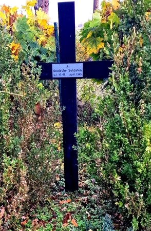 Rechter Hand steht ein Gedenkkreuz für die Soldaten, die unbekannt blieben.