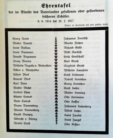 gefallenen oder gestorbenen ehemaligen Schüler
