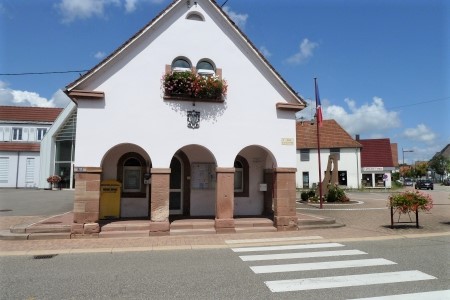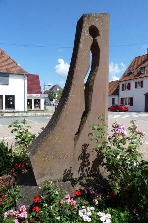Modernes Kriegerdenkmal für die toten Soldaten des Ersten Weltkriegs aus der Gemeinde. Es steht neben dem Rathaus und weist keine Namen auf.
