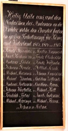 Die Gedenktafeln hingen früher in der neben dem Museum liegenden evangelisch-augsburgischen Kirche. Sie wurden nach 1945 abgehängt und später im Museum der polnischen Reformation aufgehängt.