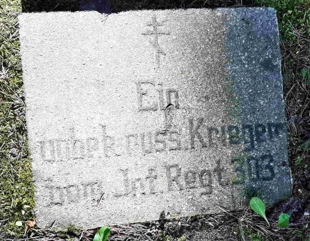 Nach 1945 wurde in Ostpreußen die deutsche Bevölkerung vertrieben und die meisten Denkmäler abgerissen, beschädigt oder umgewidmet. Es ist kein Gedenken an gefallene Einwohner aus dem Ort erhalten. Nur die zwei Gräber auf dem verwilderten Friedhof sind vorhanden.
