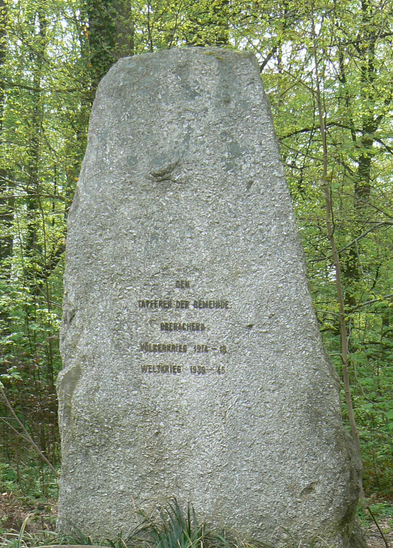 Kriegsopfergedenkstein in Form eines Granitfindlings an die beiden Weltkriege;