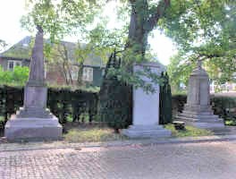 Neben der Kirche drei nebeneinanderstehende Denkmäler: