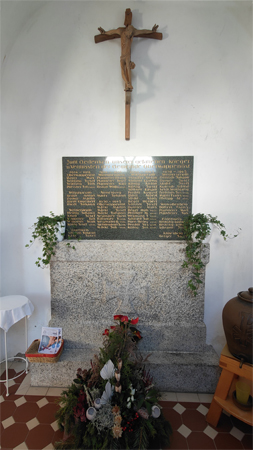Granittafel einem Steinsockel mit Tatzenkreuz in der Kirche der ehemaligen Gemeinde Oberwappenöst.