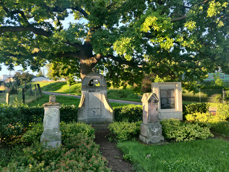 Denkmalgruppe von 1866 bis zum 2. Weltkrieg. Die Steinstelen sind stark verwittert, die von 1866 nicht mehr lesbar.
