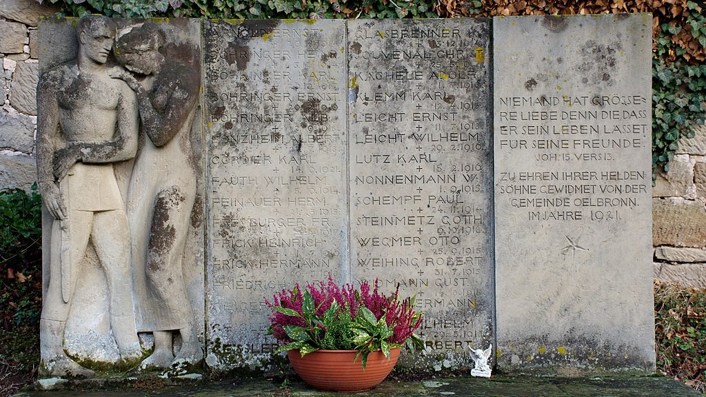 ZU EHREN IHRER HELDENSÖHNE GEWIDMET VON DER GEMEINDE ÖLBRONN IM JAHRE 1921