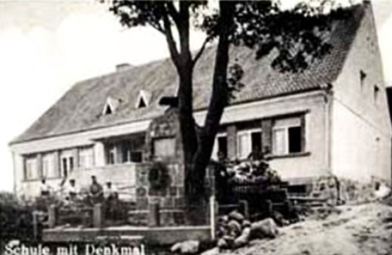 Nach 1945 wurde in Ostpreußen die deutsche Bevölkerung vertrieben und die meisten Denkmäler abgerissen, beschädigt oder umgewidmet. Hier ist das Denkmal noch in seiner Form am alten Platz vorhanden. Doch anscheinend wurde die alte Widmungs- und Namenstafel zerschlagen und nach der politischen Wende eine neue Tafel angefertigt. Zweisprachige Tafeln wurden vor 1945 nicht angebracht. Der Adler verschwand ebenfalls und wurde dann bei der Neugestaltung durch ein EK-Zeichen ersetzt. Das Denkmal steht heute in einem Privatgarten. Früher war das Gebäude die Dorfschule und es war daher ein öffentlicher Platz.
