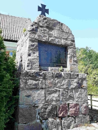 Auf dem Dorffriedhof befindet sich ein Kreuz für sieben 1914 dort bestattete unbekannte russische Soldaten.
