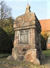 Vor der Kirche in Ostenholz das Ehrenmal für den Ersten Weltkrieg: Drei Tafeln mit 66 Namen der Kriegstoten aus den