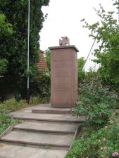 Denkmal an der Einmündung der Straße Großer Weg in die Hauptstraße für die Opfer der beiden Weltkriege mit krönendem Eisernen Kreuz.