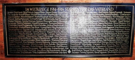 Gedenktafel für Gefallene des Ersten Weltkriegs in der Kirche.