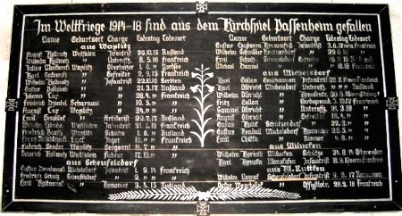 Im Jahre 2023 war bei einem Besuch die Kirche leider verschlossen. Ein Belüftungsgitter war offen und von dort konnte ein Foto von einer der fünf Tafeln des 1. Weltkriegs gemacht werden. Von den anderen Tafeln war dies leider nicht möglich.