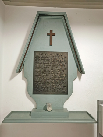 Gedenktafeln für die Gefallenen, Vermissten und Gestorbenen beider Weltkriege in der Kirche St. Nikolaus.
