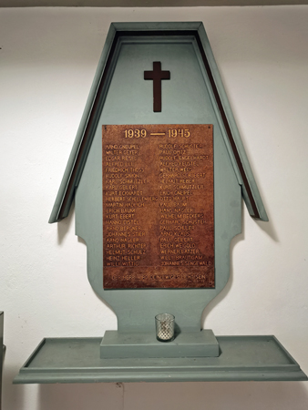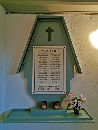 Die 2. Tafel für den 2. Weltkrieg wurde erst im November 2019 angebracht. Bei den Namen handelt es sich um Einwohner, die an den Kriegsfolgen oder in Haft starben oder vermisst blieben. Sie wurden von 1997 bis 2004 ermittelt vom Heimatforscher Erich Lippold.