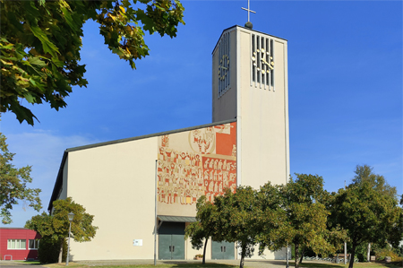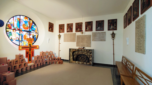 Gedenkraum mit Namenstafeln in der katholischen Kirche St. Michael.