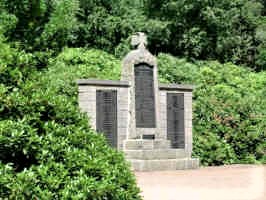 In einer Parkanlage bei der Kirche Ehrenmal für die Kriegstoten beider Weltkriege. Drei Stufen führen zu einer aus Naturstein umrahmten Namenstafel mit Inschrift.