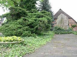 Kleine Anlage in der Ortsmitte mit Findlingen, Inschrift auf dem Zentralstein.