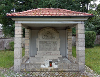 Gedenkstätte in Form einer nach drei Seiten offenen Kapelle im Friedhof Pusselsheim.
