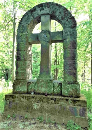 Denkmal für die Gefallenen des Ersten Weltkriegs gemauert aus Steinblöcken außerhalb des Ortes auf dem alten Friedhof: Hoher Sockel mit aufgesetztem großen Kreuz, im Bogen umschlossen von Steinblöcken (Inschriften teils verwittert).