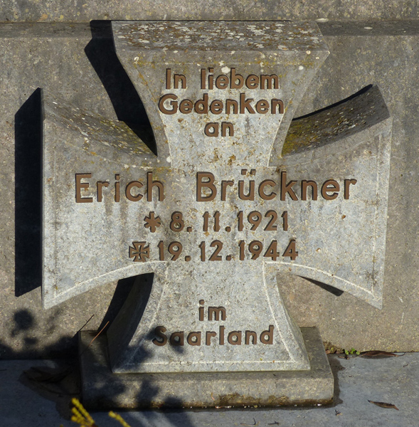 Unteroffizier | BRÜCKNER | Sebastian | 03.03.1886 | 03.11.1916 b. Verdun i. Frk. | 15. Res .Inf. Regt. 11. Komp. | Inh. D. EK II u. des Milit. Verdienstkr., vermisst; Kriegsgräberstätte in St.-Laurent-Blangy; Kameradengrab |