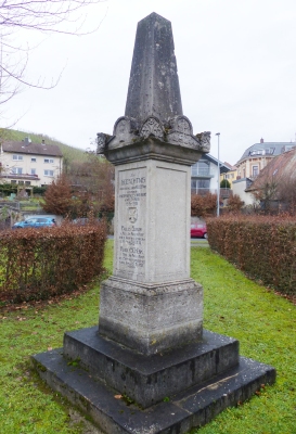 Ein vom Ortskern nach Ortsausgang versetzter Obelisk trägt die Namen der Gefallenen des Kriegervereins im Feldzug 1870-71 und von 1914-18.