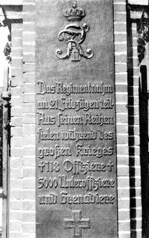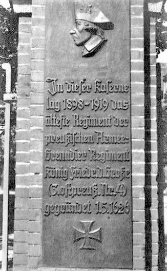 An der ehemaligen Kaserne des Grenadier-Regiments Nr. 4 wurden an den Pfeilern des Eingangstores zwei Metall-Gedenktafeln für die gefallenen Angehörigen des Regiments angebracht (nach 1945 abgerissen).